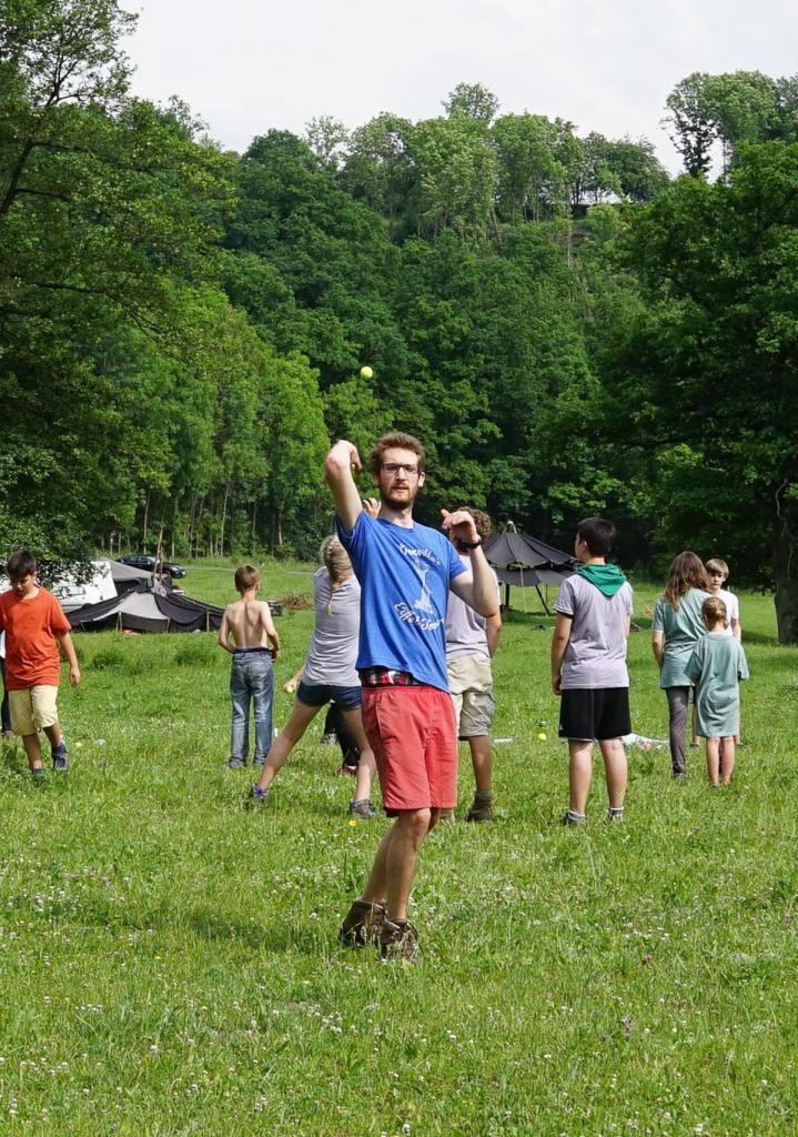 Nach einer sehr ruhigen Nacht im Zelt, sollte nun das Themenbezogene Programm beginnen. Das Thema um das sich das Wochenende drehen sollte, lautete Pokemon. Wo einige der Leiterrunde sich zurück in ihre Kindheit versetzt gefühlt hatten und andere schon nicht die nachträgliche Begeisterung für den 2016er Hype von Pokemon Go verstanden, freuten sich die Kinder wie verrückt. Somit hatte das Wochenende eine Geschichte, es gab vier Pokemontrainer die zuerst verschiedene der Taschenmonster mittels „Pokebälle“ einfangen mussten und mit den gefangenden Spielen, Einzelaufgaben und Gruppenaufgaben meistern mussten.