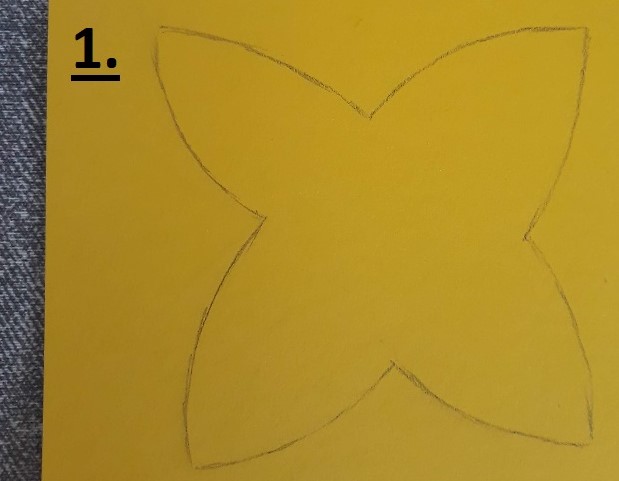 - Zeichne eine Blüte mit dem Bleistift auf die Pappe und schneide diese aus.