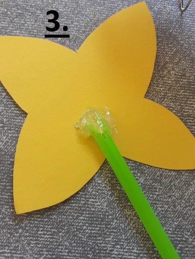 - Klebe die Blüte mit Heißkleber oder Klebeband an den Strohhalm.