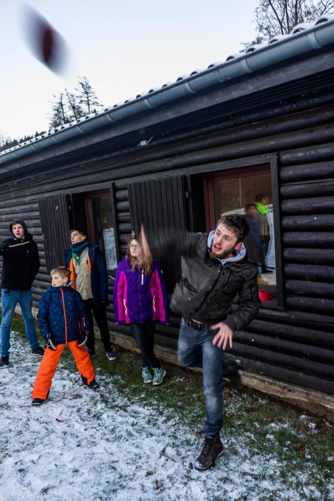 Dieses Jahr ging es in das Bleialfler Hüttendorf in der Schneifel. Der Name der Region war während der Hinfahrt Programm und so kam es, dass der erste Wintereinbruch unsere Fahrzeit von eineinhalb auf viereinhalb Stunden verlängerte. Froh endlich angekommen zu sein wurde sofort mit dem Kochen für den letzten Truppabend begonnen. So verbrachte dann jeder Trupp für sich, bei selbst vorbereitetem Essen und Abendprogramm, die nun schon etwas späteren Stunden.